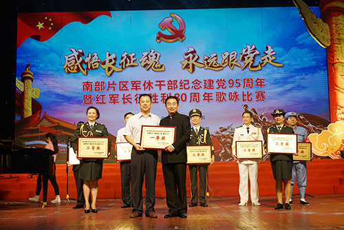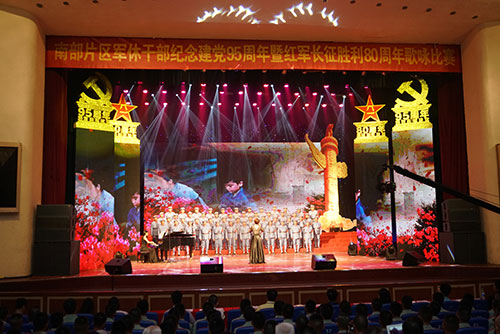 为庆祝中国共产党成立95周年和红军长征胜利80周年,9月20日下午,由民政部主办、注册送彩金白菜 承办、南部战区空军政治工作部协办的南部片区军休干部庆祝建党95周年暨红军长征胜利80周年歌咏比赛,在广州市黄花岗剧院成功举办。民政部优抚安置局军休处处长王军、注册送彩金白菜 副厅长陈奇,南部战区空军政治工作部副主任王远明少将等领导出席,驻粤部队、广州市军休干部1100多人观看了比赛。