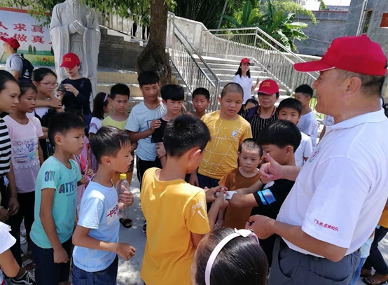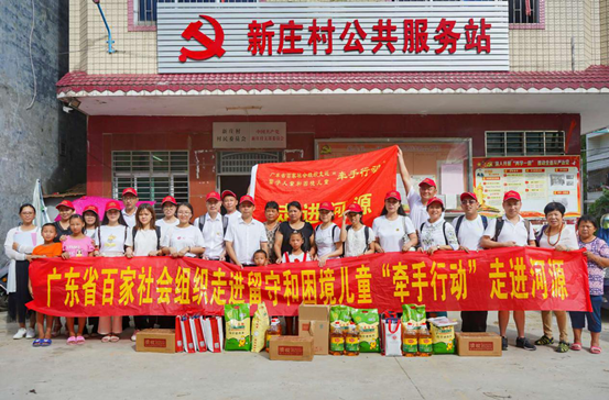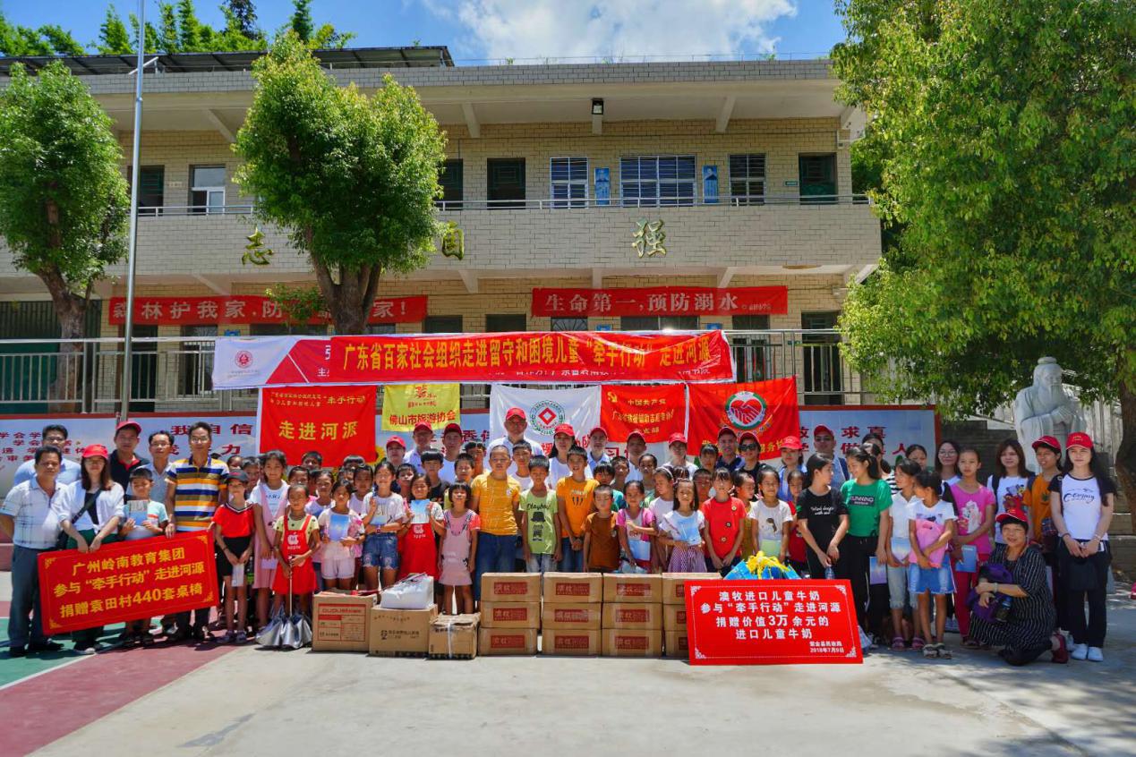 组织百家社会组织走近留守和困境儿童开展关爱保护活动的号召,广东省救援辅助志愿者协会、广东省岭南教育慈善基金会、广东省心怡科技公益基金会、佛山市旅游协会、广东省健康养生协会、河源市紫金县商业服务协会、广州市致诚法律援助研究中心、深圳市社联社工服务中心、东莞市横沥镇隔坑村社区服务站、广东省环境保护基金会等十家社会组织组成“牵手行动”河源组,联合3家爱心企业代表, 在7月9日至10日,下村入户走访河源紫金县1家福利院,3个镇、5个村、1所学校,慰问了45位留守及困境儿童并入户访问,对袁田小学近100名学生开展健康及应急安全教育活动。