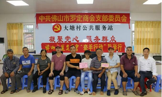 朗塘镇朗南村黎氏孤儿俩兄弟自小由堂叔公等族人监护抚养。兄弟俩十分争气,读书成绩较好。黎少镇大塘村困难家庭陈同学是弃婴,被一对无儿无女老夫妇抚养,今年小升初以优异成绩考入实验中学。商会和党支部分别为陈同学送上助学款。罗平镇石塘村的范同学在读初中二年级,妹妹读初一,还有弟弟读一年级,年迈的父亲长年患病,母亲精神残疾,年仅13岁的她勇挑生活重担,任劳任怨地照顾好家庭。