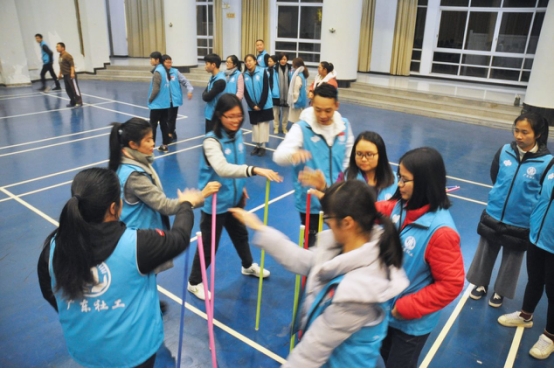 团建活动上,10个社工站的双百社工通过团队游戏,相互合作,加深彼此之间的感情,巩固双百社工的团队建设。