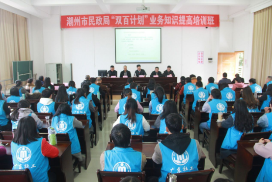 为更好地推进现阶段潮州市“双百计划”工作,近日,潮州市民政局举办“双百计划”业务知识提高培训班,各有关县区民政局领导、业务股长、镇街社事办主任、潮州市地区协同行动中心及10个社工站社工全体成员参加了培训。