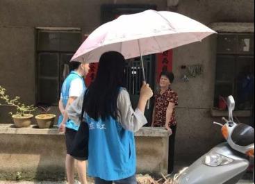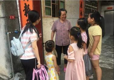 南恩街道社工站“双百”社工带领社区小志愿者入户宣传防台风知识