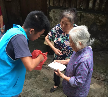台风虽过,但镇区市场尚未营业,溪头镇“双百”社工为社区的独居老人及民政服务对象送上晚饭