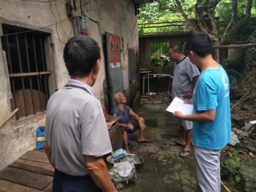 潭水镇社工站“双百”社工入户宣传防风工作,到独居长者家中检查住房安全隐患,协助及时转移到临时庇护所,确保人身安全