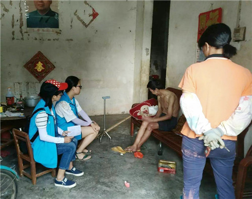 7月13日下午4时许,我们社工在走访途中偶遇刚下班回家的一位村委干部,我们向他打了声招呼。村委干部问我们怎么还没下班?我们答到,我们还想再走访一下村里的困难群体。刚回答完,村干部就说:“那正好”,接着村干部就指着前方不远处的一户人家说道:“这户人家就是村里的低保户,你们去了解一下吧!”说完,我们社工就在村干部的指引下来到了这户人家门前。首先映入眼帘的是这户人家的门前放着七八个脏兮兮的碗碟,似乎是用来喂鸡狗之类的用具。这户人家的门是半开着的,我们连敲了几次门都没人应答,我们没有执意推门进去,生怕吓到这家主人。这时我们又在村干部的帮助下叫来了这户人家亲弟弟的媳妇过来推开门带我们进去。