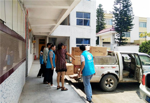 会议过后,我们将政府的“关爱留守老人”物资搬上车,准备随各村负责人一起去下发物资。