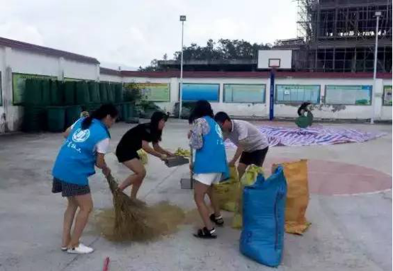 同村民一起收稻谷,了解需求。7月下旬是夏季稻谷收割时间,新丰县属于九山半水半分田的地方,能耕种的田地不多,而东瓜坑是没有水田的,村里仅有两户家庭(都是残障家庭)是有在县城其他村里租别人的水田种植稻谷。在篮球场晒谷的是一位中年妇女,我们叫她芬姐。家里有三个小孩,和丈夫都是没有固定工作,靠打散工维持生活,种了稻谷,能减轻生活的负担,三个小孩其中最小的男孩是肢体一级残疾,生活尽管不容易,却也乐观和积极面对生活的困难,也能理解政策和政府。经过几次抢收稻谷,同劳动的情况,对我们有一定的信任,建立了良好的关系,深入访谈,进一步了解深层次的需求,为接下来的服务起到了指引性作用。