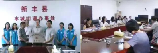 7月4日,这是我们去丰城街道报道的第一天,新丰县民政局领导及街道谭主任、雷彩霞书记以及社会事务办的工作人员热情的接待了我们,并完成了签约仪式。街道领导带领我们五位社工入驻了东瓜坑社区和紫城村,居委以及村委都以实际行动表达了对我们的欢迎和期待,提前为我们准备了办公“拎包即住”的场地。