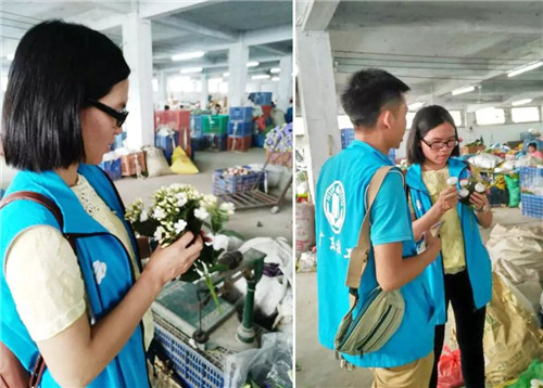 青莲镇社工服务站社工在花厂对假花生产的了解和花厂负责人洽谈