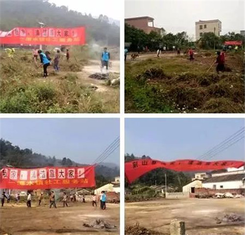 自“双百”社工入驻阳江市阳春市潭水镇荆山村至今已有5个多月,通过社工站前期对明理村的入户探访和村落资源的挖掘,社工发现村口有个大池塘,池塘旁边有一个约800平方但近乎荒废的大地堂(据了解此地为旧时的生产队,即公家大地堂),不但长满荆棘,杂草丛生,还成为了村民堆积农家肥的地方。于是,潭水镇社工站决定通过行动带动村民维护社区公共资源,爱护社区公共环境,恢复大地堂原貌,重拾村落文化习俗,并以此打造出属于村民、可供社工开展服务的公共场所,满足村民休闲娱乐的需求。