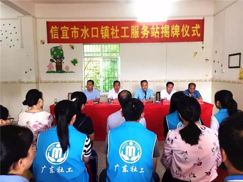 面对着多重困难,我们多方协调寻求解决办法,8月中旬终于收到了回报。镇方对社工站的落实问题加大力度,多次深入该村民家中协调场地租金问题,最终双方达成一致。同时,镇方还承诺将会全部负担社工站的场地租金等费用,并立即开始了对社工站的装修工作,使之能成为集办公、活动及住宿于一体的多功能场所。8月16日,水口社工站正式揭牌,也代表着双百社工驻村工作正式开始。当天,市民政局、水口镇政府主要领导到场致辞,而且还邀请了信宜市电视台进行拍摄,还有约80名村民也参加了仪式。个别村民甚至说,社工站成立这件大事,将会登入他们的族谱!