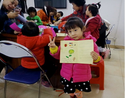 在送完饺子后,孩子们开心地打开自己的爱心能量集,获得了社工为他们盖上的小印章,一枚印章,让他们感受到了巨大的成就感。