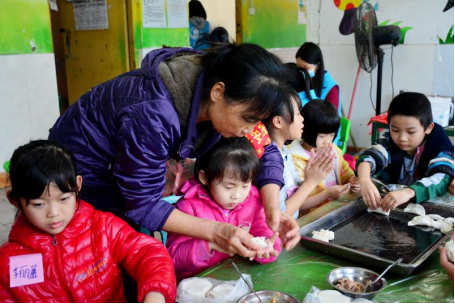 1月27日,社工与“材料准备组”亲子家庭一起到市场采购材料,随后参加活动的社区亲子家庭陆续到来,开始清洗、切菜、调味、拌馅等工作,“后勤组”家长们督促大家洗手,孩子们自觉地坐在凳子上,一双双稚嫩的手,学着大人们一小勺肉馅、包住、捏捏,而“大朋友”们个个技术娴熟,包的饺子各具特色,一个小时四五百个饺子的“任务量”,自然不在话下。
