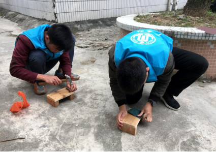 溪头社工精挑细选,对比木材质量,量度好小木凳的尺寸,让木厂帮忙锯小木凳的材料。经过几天的努力,终于根据欢叔的要求把小木凳制作好了。