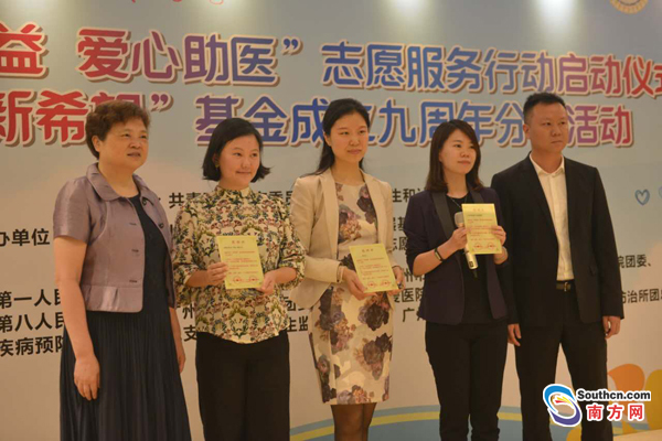 南方日报讯 (记者/江珊 通讯员/黎振杰 黎珏鑫)15日上午,“青春公益 爱心助医”志愿服务行动启动仪式暨“新希望”基金成立九周年分享会活动在广州市妇女儿童医疗中心的五楼礼堂举行。来自12家市属医疗机构的志愿服务代表、“新希望基金”受助患者们、捐赠爱心企业家齐聚一堂,共同分享九年来参与“新希望基金”的感恩故事。
