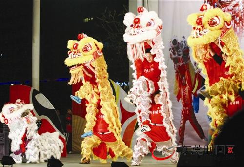 ■文化志愿者大舞台2015年元宵晚会。图为醒狮表演(记者杨泽彬摄)