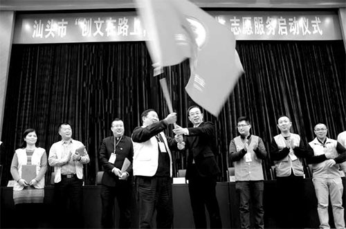 汕头市领导向汕头市志愿者联合会授旗