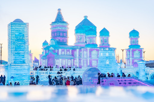 哈尔滨等行政区划名称在构建文化符号方面发挥了重要作用,而符号化策略成为打开地域文化传播新格局的一把密钥。图为黑龙江哈尔滨冰雪大世界主题冰雕。 供图/视觉中国