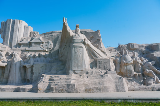 秦始皇废除分封诸侯制,推行郡县二级制。图为陕西省西安市大秦文明园大型雕塑作品《文治》。