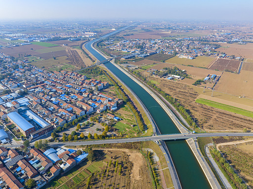 河南省温县建县历史可追溯至春秋时期,至今已有2000多年。图为南水北调中线工程输水干渠路线途经温县。供图/视觉中国