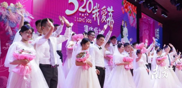 自2021年起,茂名连续五年举办“520・我爱荔”集体婚礼,累计为249对新人送上盛大而浪漫的集体婚礼。2025年5月20日,第5届“520・我爱荔”集体婚礼在广东省首个荔枝文化主题服务区——柏桥服务区盛大举行。75对身着新中式传统服饰的新人,在红地毯、鲜花拱桥的甜蜜氛围中,携手完成三拜礼、却扇礼、合卺礼、结发礼等中式传统婚礼环节,在荔枝之乡许下白首之约。