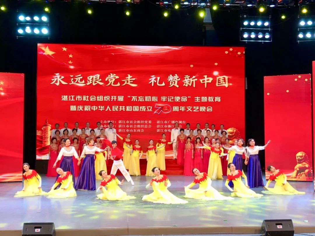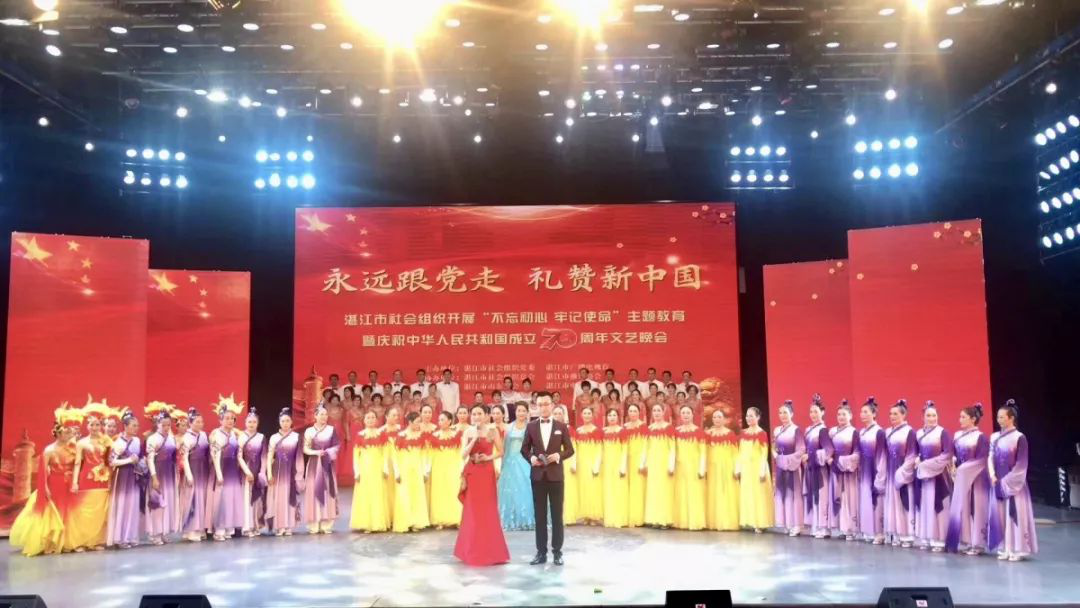 9月25日,湛江市社会组织开展“不忘初心、牢记使命”主题教育暨庆祝中华人民共和国成立70周年文艺晚会,在湛江市广播电视台演播大厅顺利举行。