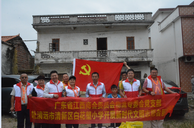 广东省江西商会物流专委会党支部一群人来到清远白花塱小学,与学校进行交流,了解贫穷学生需求。同时,该支部开展了为学校进行清洁义务劳动活动。该支部还分别到学校提供的5个贫穷学生家里拜访,发解学生实际情况,安抚相关学生,并赠予书包和棉被。