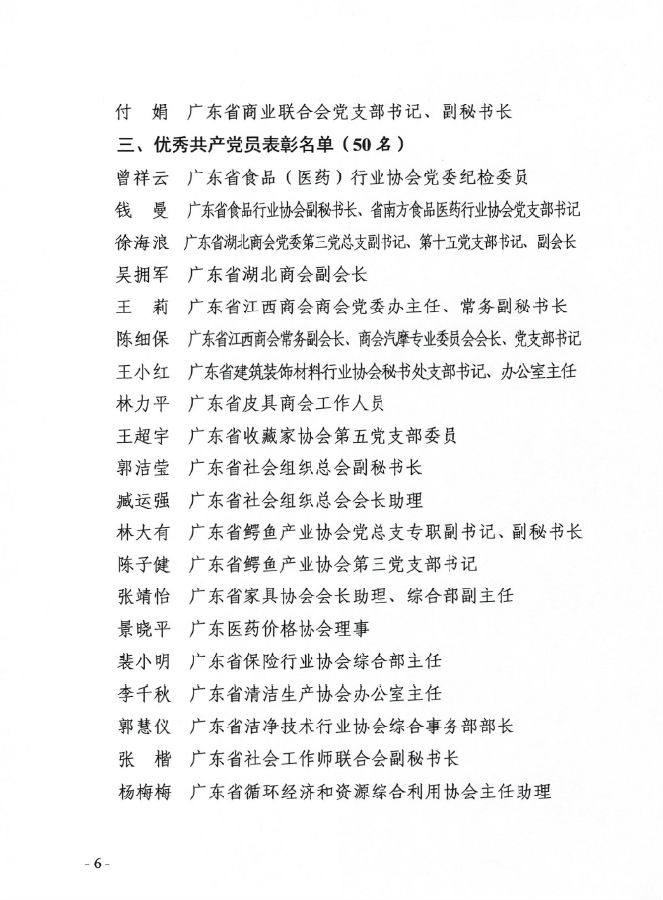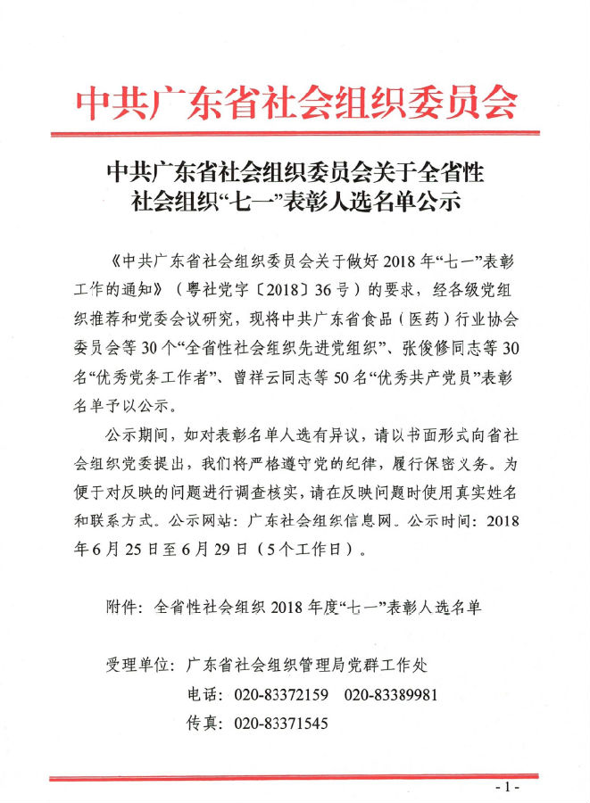 中共广东省社会组织委员会关于全省性 社会组织“七一”表彰人选名单公示