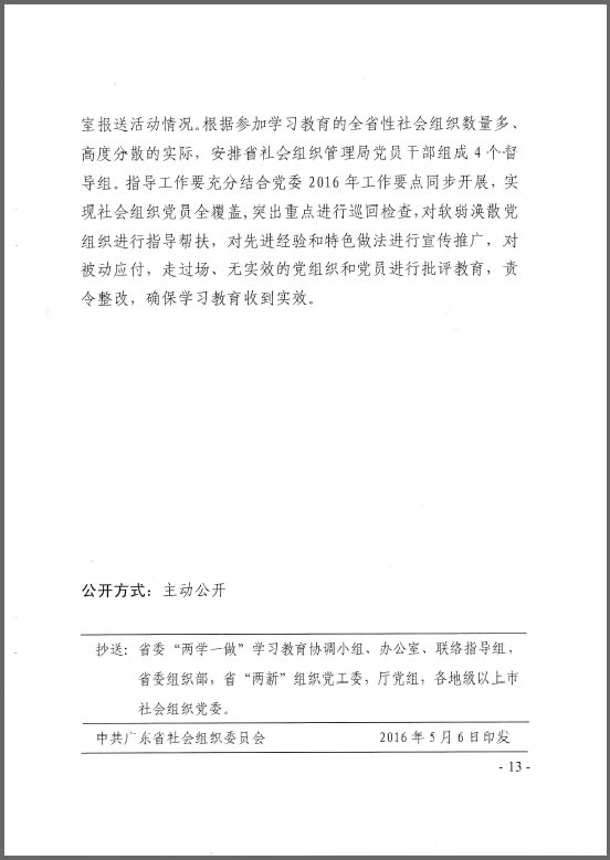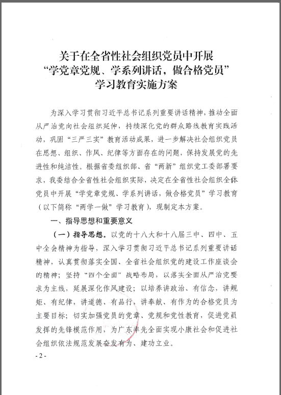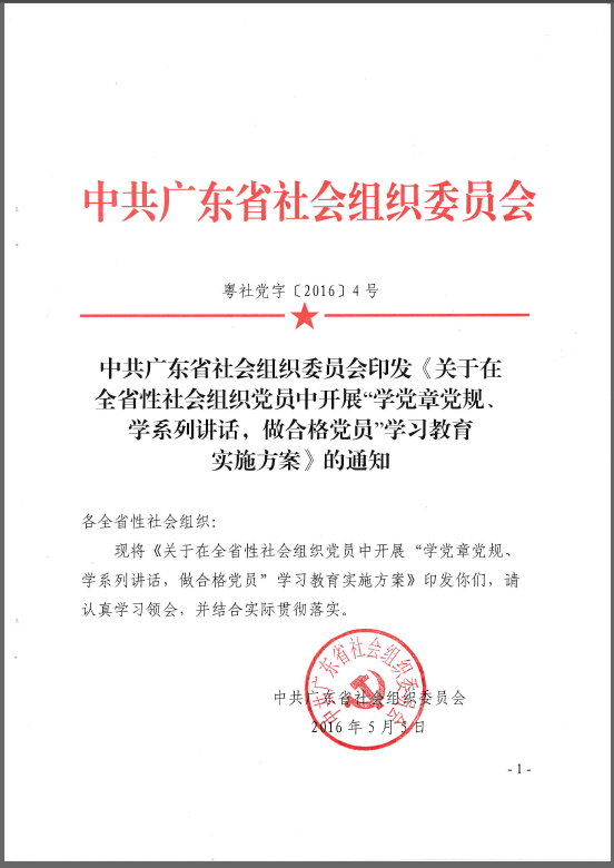 中共广东省社会组织委员会印发《关于在全省性社会组织党员中开展“学党章党规、 学系列讲话,做合格党员”学习教育 实施方案》的通知
