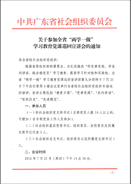 关于参加全省“两学一做”学习教育党课巡回宣讲会的通知