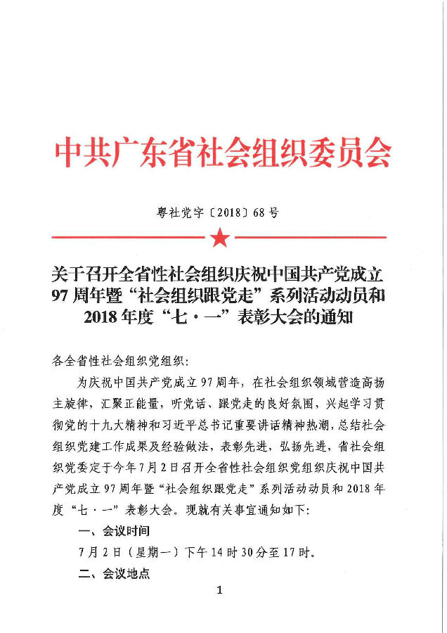 关于召开全省性社会组织庆祝中国共产党成立97周年暨“社会组织跟党走”系列活动动员和2018年度“七·一”表彰大会的通知
