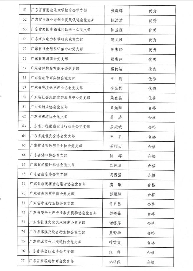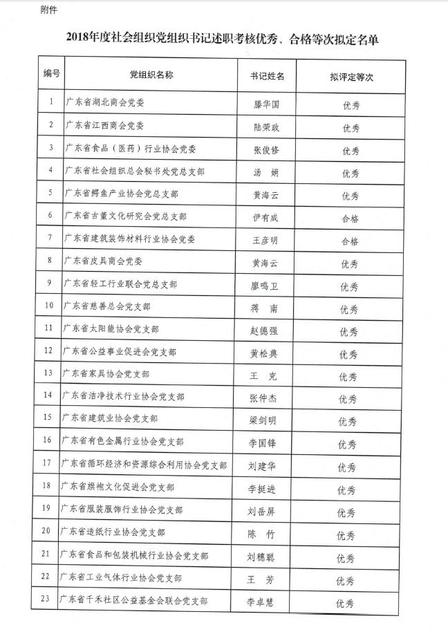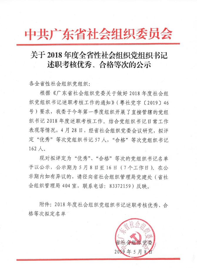 关于2018年度全省性社会组织党组织书记述职考核优秀、合格等次的公示