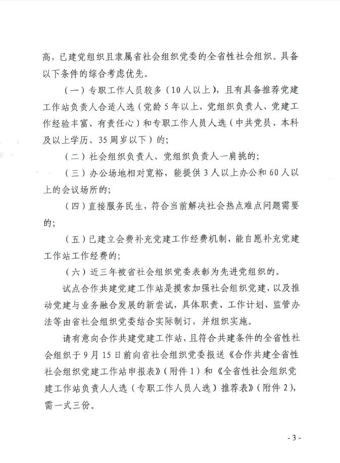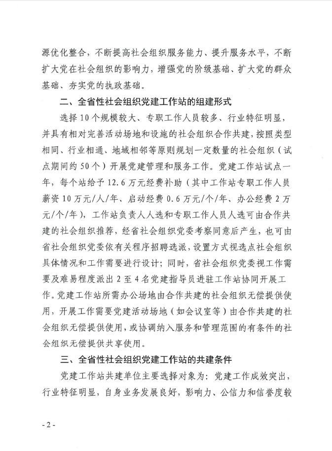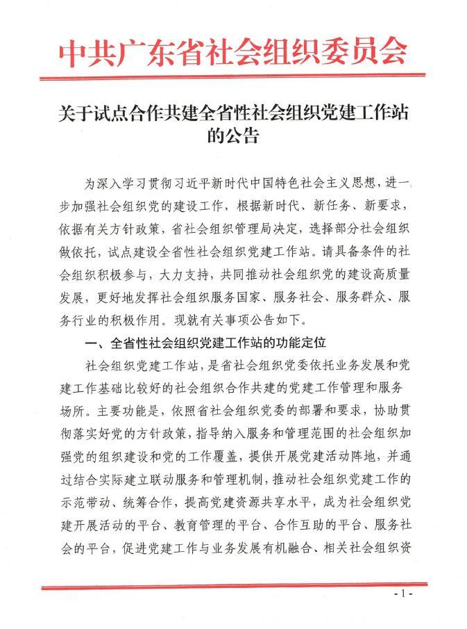 关于试点合作共建全省性社会组织党建工作站的公告