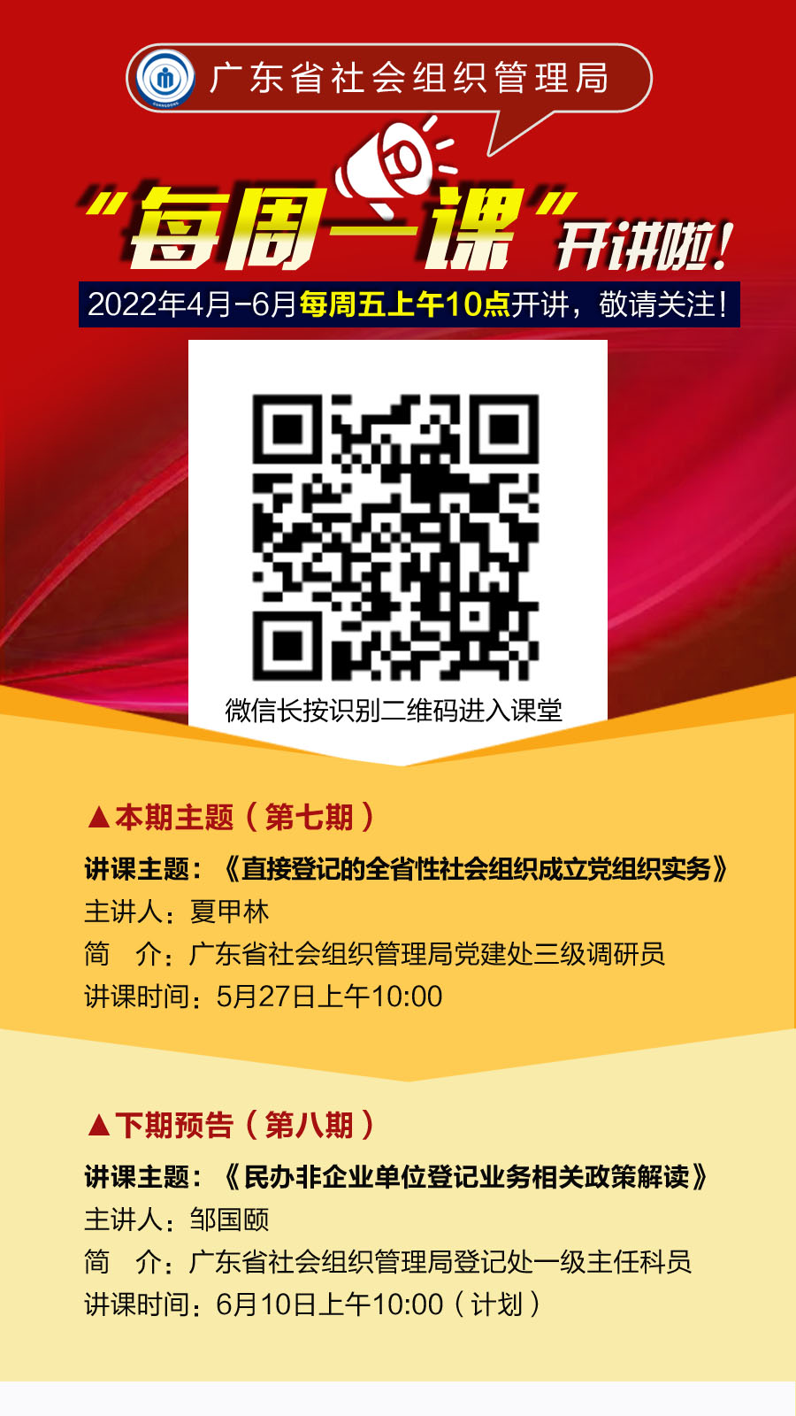广东省社会组织管理局“每周一课”(第七期)开讲啦!