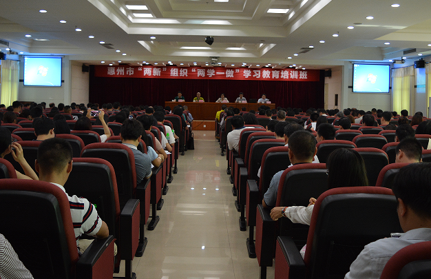 6月21日上午,惠州市"两新"组织"两学一做"培训班在市委党校开班,这次培训由市社会组织党委举办,为期两天。培训主要安排有理论授课、现场教学和革命传统教育等内容。市委组织部副部长、市"两新"组织党工委书记侯文慧出席开班仪式并讲话,来自市"两新"组织基层党组织书记(党务工作者)共280多人参加培训,社会组织党组织书记(党务工作者)80多人参加了培训。