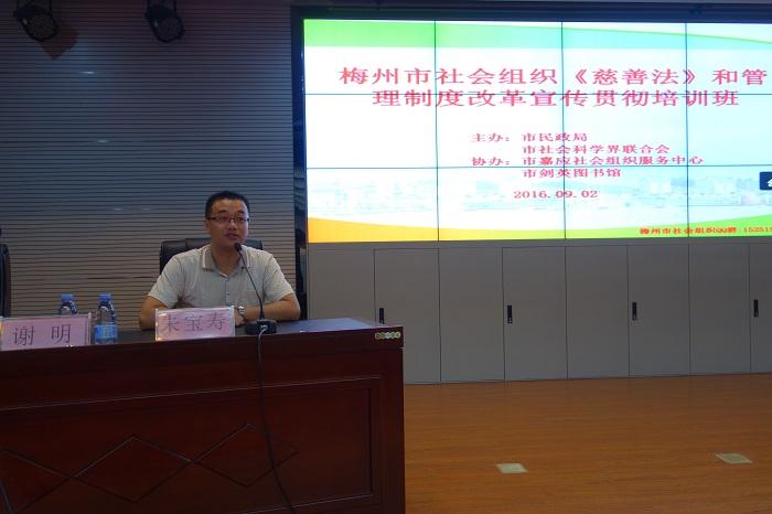 9月2日上午,梅州市社会组织《慈善法》和管理制度改革宣传贯彻培训班在梅州市剑英图书馆举行,200多名社会组织管理人员和嘉应学院政法学院师生参加培训。