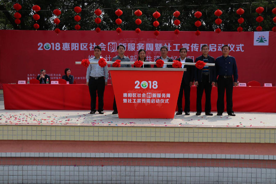 3月26日,由惠阳区民政局主办开展的惠阳区社会创新服务周暨社工宣传周启动仪式在淡水人民公园举行。广东省社会组织管理局副局长、社会组织党委副书记江海鹰,市民政局副局长叶思南,区委常委、区政府党组成员黄树文,市社会组织管理局局长邓文汉,区委组织部、区政府办、区民政局等单位相关负责人出席活动。本次社会创新服务周暨社工宣传周活动为期5天,共设资源对接分享会、社会组织培训营、公益沙龙、社综中心展示、社会创新之旅等五大部分,旨在探索对社会的引领和服务模式,提升社会组织的影响力,同时提供一个学习新知识、新思想、新经验的平台,促进社会组织创新发展。