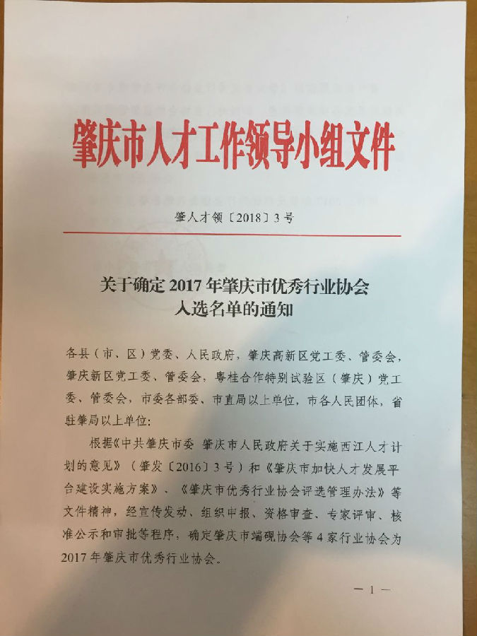 关于确定2017年肇庆市优秀行业协会入选名单的通知