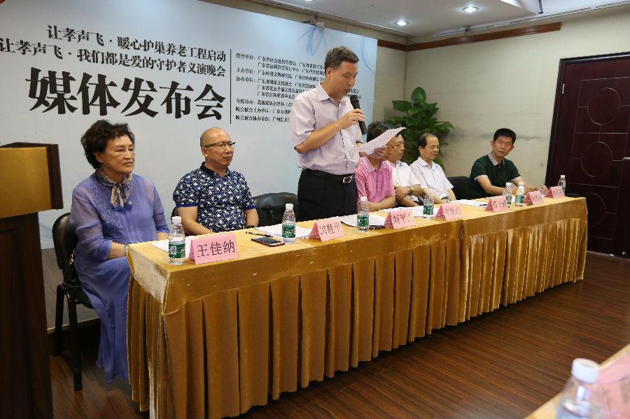 首先,由广东省省情调查研究中心主任、广东岭南文博研究院执行院长冯胜平向现场来宾和媒体记者介绍:该工程是一项为我省空巢老人等特殊老年群体提供心灵关怀和精神慰藉为主的公益养老志愿服务行动;该工程的实施旨在联合我省社会组织和社会各界,关心和扶助我省农村留守老人、城市空巢老人、失独老人、失能老人等特殊老年群体,为我省老龄事业发展服务;工程第一个五年计划从2016年至2021年实施。第一年度集中在广州市及其周边地区开展,筹建“让孝声飞”服务示范点;第二年度逐步辐射粤西地区,在敬老院、养老院、社区、养老服务中心等地方建立“让孝声飞”服务示范点;第三年度逐步辐射至粤东及粤北地区,扩大“让孝声飞”服务示范点;第四年度在全省范围内全面实施,争取在每一个镇(街)建立一个“让孝声飞”服务示范点;第五年度总结全社会共同行动成果,推动第二阶段开展与深化。整个系统工程将在8月7日“让孝声飞——我们都是爱的守护者”义演晚会上正式启动。
