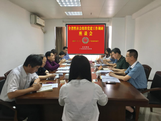 省社会组织党委副书记、省社会组织管理局局长刘平波一行赴广东省扶贫开发协会进行全省性社会组织党建工作专题调研,省政府特聘参事、省扶贫开发协会常务副理事长兼秘书长钟韶彬及相关协会成员出席座谈会。
