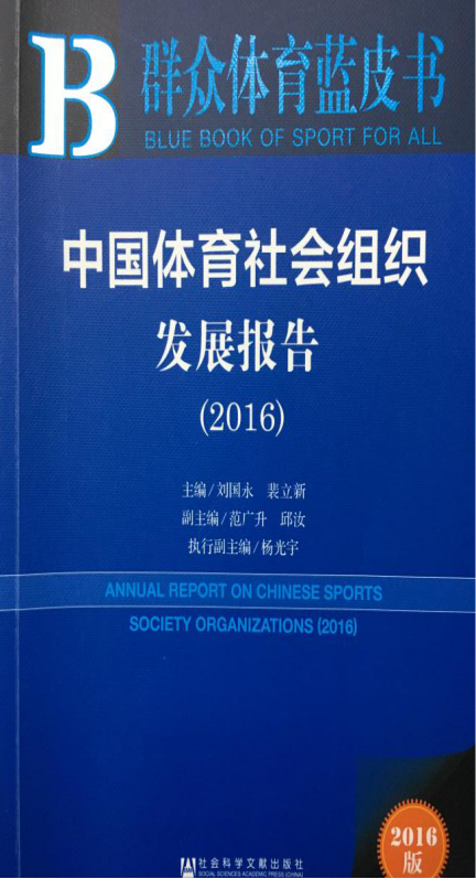 近日,由国家体育总局群体司司长刘国永和广东省全民健身促进会(以下简称促进会)理事长裴立新共同主编的“十三五”国家重点图书出版规划项目《中国体育社会组织发展报告(2016)》,由社会科学文献出版社出版发行。该书是我国首部由国家权威机构组织调研、编写和发布的关于中国体育社会组织的蓝皮书。国家体育总局局长刘鹏担任编委会名誉顾问,副局长冯建中,局长助理李颖川为顾问。全书具有较高实践和学术价值,主要创新之处为,以国情为立足点,以发挥作用为出发点,以政策建议为落脚点,对体育社会组织发展阶段、发展机遇、发展障碍、时代定位做了独到分析,并针对体育社会组织发展中的问题以及体育部门在促进体育社会组织发展中如何正确发挥作用和履行责任提出了对策建议。促进会理事长裴立新作为主编负责了前期的调研,向国家体育总局提出编写建议,设计了全书的架构及章节,组织编写和统稿。参与本书撰写的人员来自北京体育大学、天津体育学院和西安体育学院以及体育行政部门的管理人员。促进会研究团队的多位专家参与了前期调查研究,其中李好副秘书长、张羽琳理事、赖齐花秘书长三位促进会成员参与了撰写,为该书的出版发行做出了贡献。