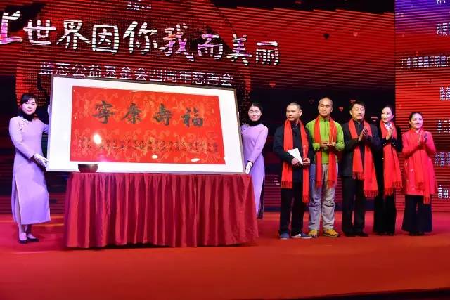 吴鸿清教授手书的“福寿康宁”四个大字,第一轮竞拍22万元成交,第二轮被再次追拍10万元,这幅作品,当晚为公益慈善共计筹款32万元。