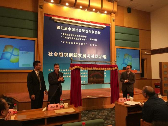 12月7日,第五届中国社会管理创新论坛在我校举行。本次论坛主题为“社会组织创新发展与社会治理”,会上进行了全国社会组织教育培训基地揭牌仪式、广东省社会组织研究中心挂牌仪式,并发布《广东社会组织蓝皮书》(2015)。早在11月7日,我校副校长阳爱民代表我校签署了《首批全国社会组织教育培训基地协议书》,此次论坛旨为进一步落实会议内容,促进社会组织和社会管理创新发展。