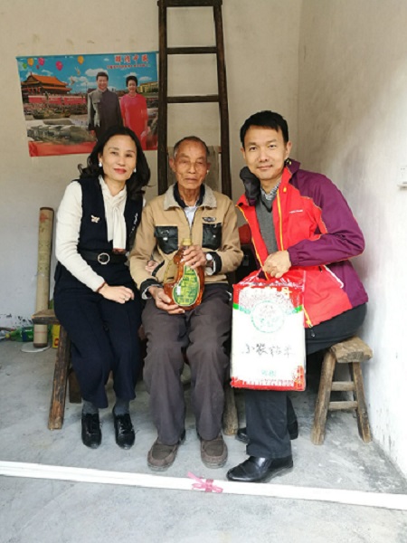 中心对该村44位孤寡老人进行走访慰问,为老人们分别米和油。林梅宝理事长还为7个特困户和1个困难残疾人家庭各送上300元慰问金。中心一行还与贫困学生进行了深入交流,鼓励他们好好学习,天天向上。