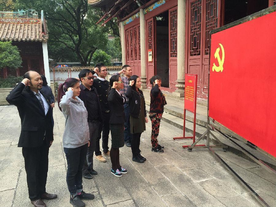 在农民运动旧址前,我们在党旗下重温入党誓词,共同表达对党的无比真诚,激励每个党员同志时刻牢记自己是一名共产党员,时刻以一名共产党员的标准从思想上、工作上及生活上严格要求自己。