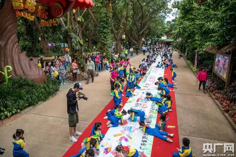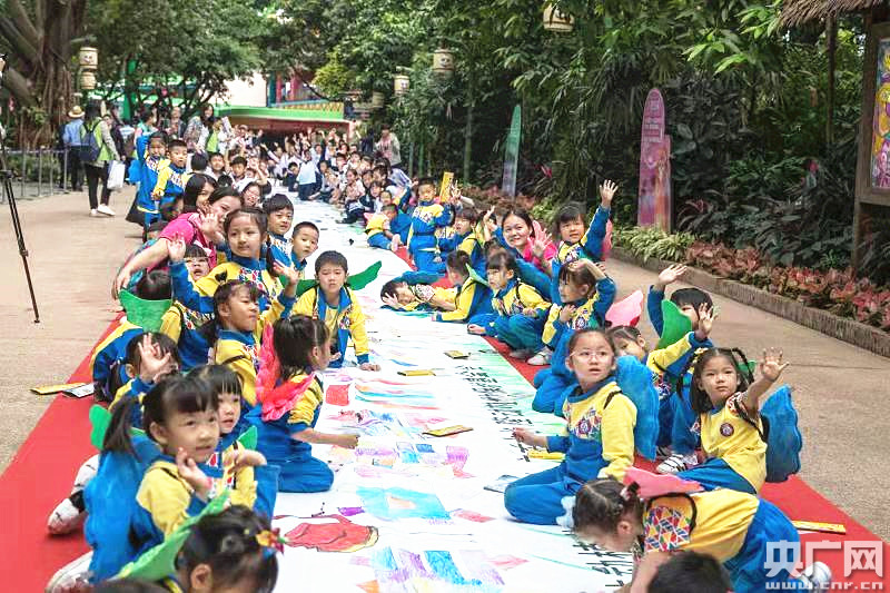 央广网广州11月9日消息(记者郑澍)11月9日,“第28届野生动物宣传月暨长隆神奇空中动物科普月”主题活动在广州长隆野生动物世界启动。超1000名学生代表、野生动植物保护志愿者和广大游客,共同绘制了保护野生动物的长画“秘密森林”,场面盛大。