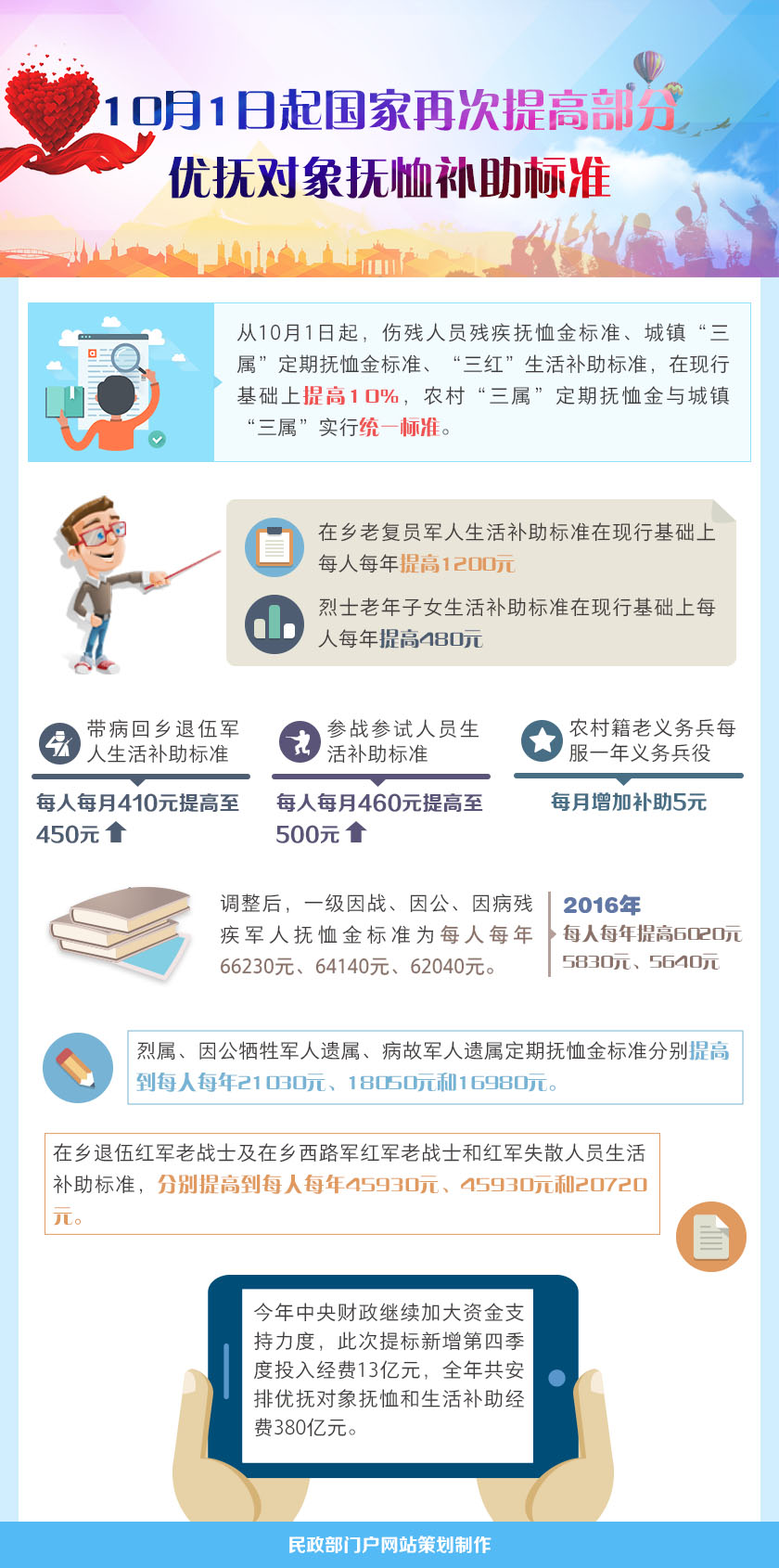 图解:10月1日起国家再次提高部分优抚对象抚恤补助标准