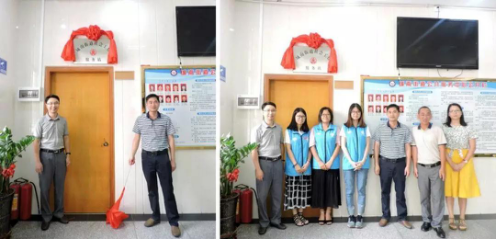 江城区民政局、城南街道办事处各级领导与社工一起揭牌