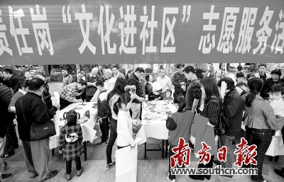 近日,惠州市直机关工委、市中心人民医院联合惠城区龙丰街道飞鹅岭社区居委会,在龙丰公园举办市直党员责任岗志愿服务“文化进社区”活动,100多名来自市直单位的党员干部职工为居民义诊、写春联,晚上还为2000多名观众送上一台精彩的文艺晚会。
