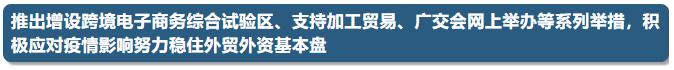 当前全球疫情大流行加速传播,对世界经济和国际贸易投资带来巨大冲击。要按照党中央、国务院做好“六稳”工作部署,坚持扩大开放,采取一系列稳外贸、稳外资举措,努力减轻我国经济特别是就业受到的严重影响。